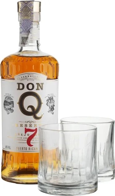 Ром Don Q Reserva 7 yo 0.7 л 40% + 2 бокала в подарунковій коробке (2021000046995)